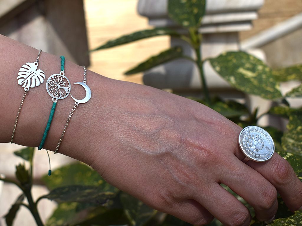دستبند نقره طرح برگ انجیری