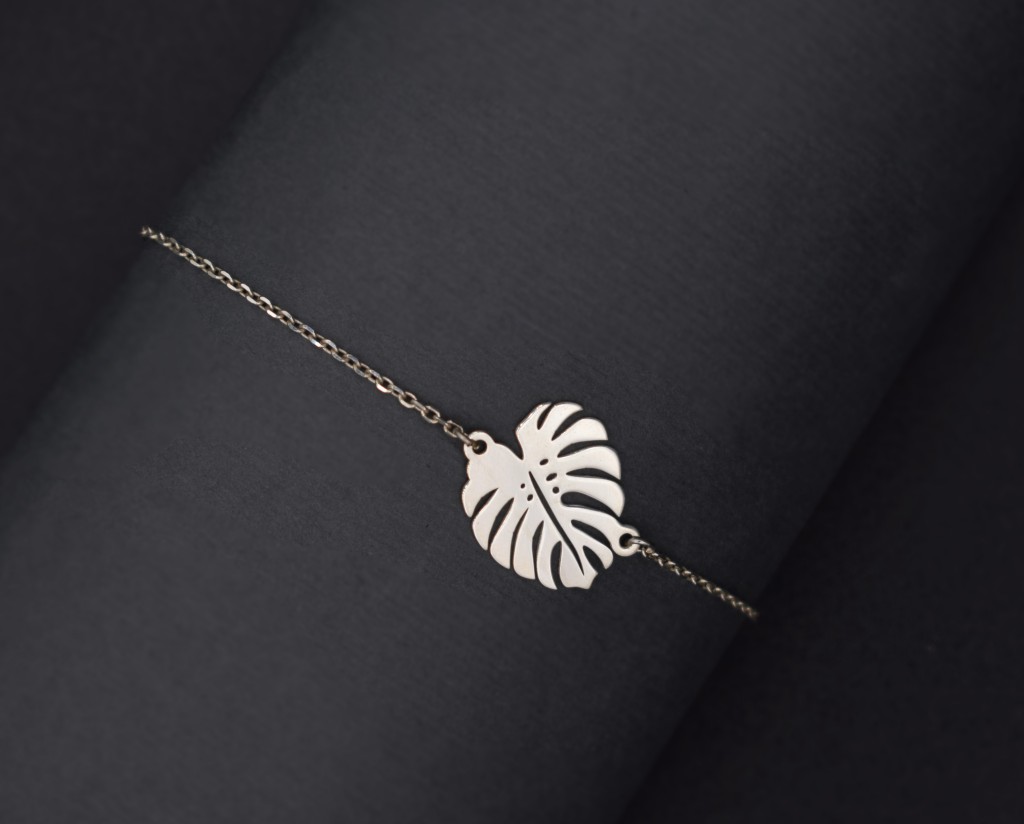 دستبند نقره طرح برگ انجیری با طراحی ظریف و الهامگرفته از طبیعت، انتخابی شیک برای بانوانی است که به زیورآلات مینیمال و خاص علاقه دارند.