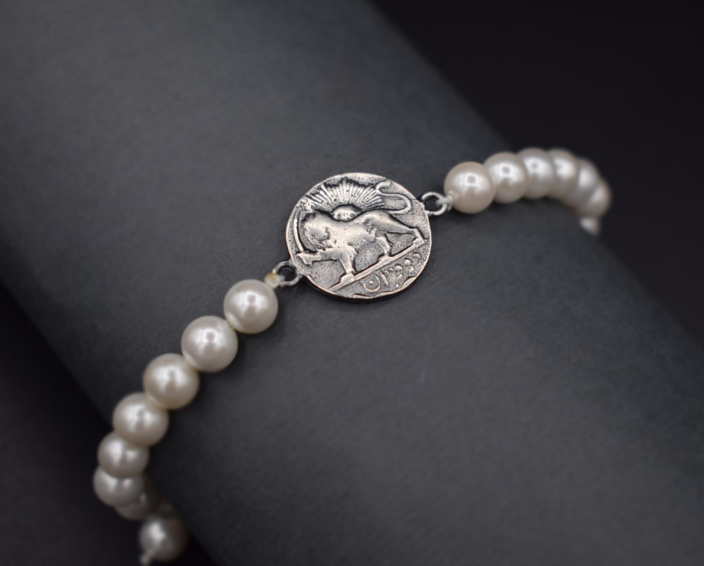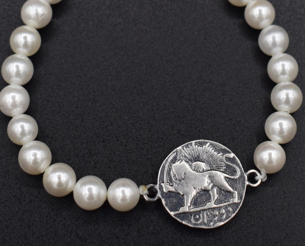 دستبند نقره سکه شیر و خورشید - دو قرانی