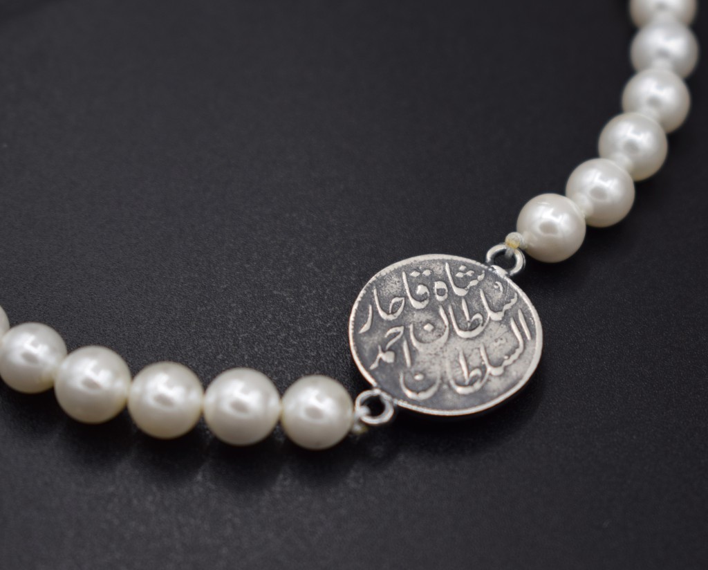 این دستبند خاص از سکه نقره دو قرانی دوره قاجار ساخته شده است.