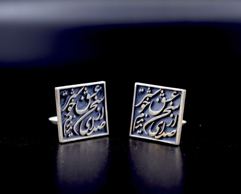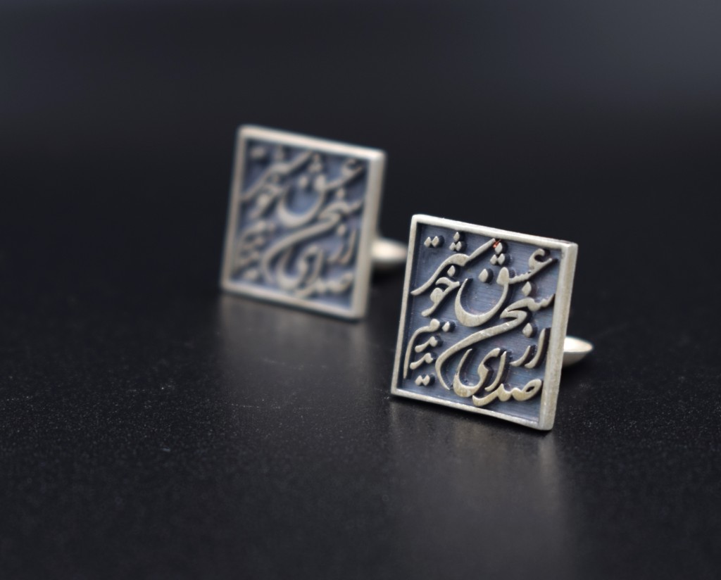 این دکمه سردست نقره مردانه تلفیقی از هنر زیورآلات و ادبیات فارسی است.